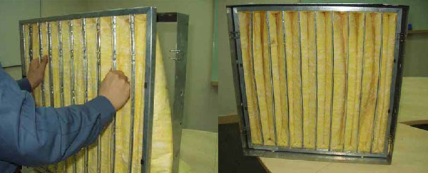 玻璃纖維袋式中(zhōng)效過濾器分別為F7級玻(bō)璃纖維袋式(shì)中效過濾器和F8級玻璃纖維袋式中(zhōng)效過濾器。