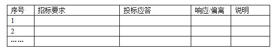 四、技(jì)術指標和商務響(xiǎng)應格(gé)式要求: