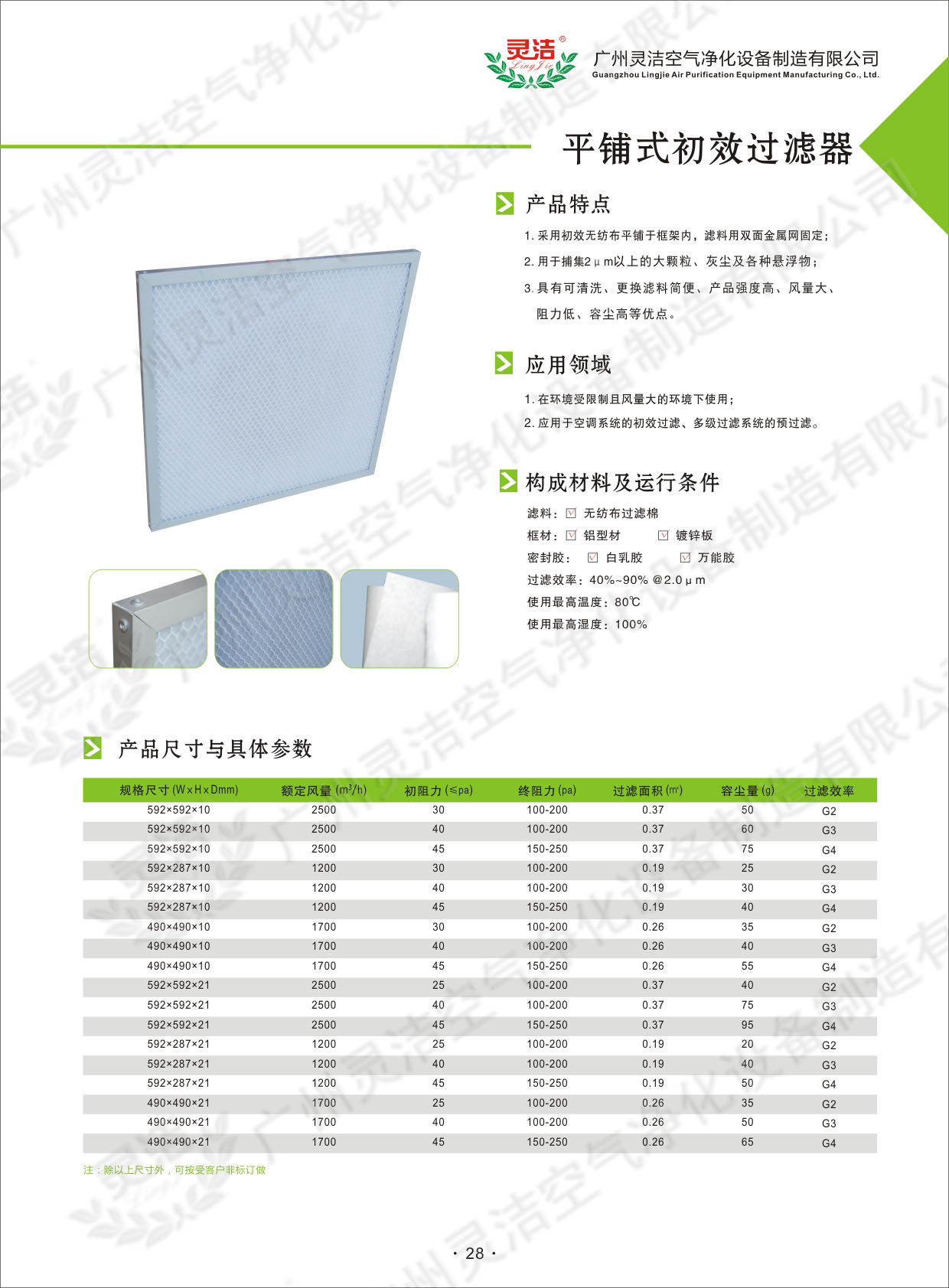 初效過濾器使用大(dà)全 1、用途 初效過濾器也稱粗效過濾器,初效過濾器是作為空氣(qì)過濾中前端過濾,有效的保護下級過濾器(qì)的過濾效率及使用壽命(mìng),主要(yào)用於過濾 5m 以上塵埃粒子。一般(bān)應用